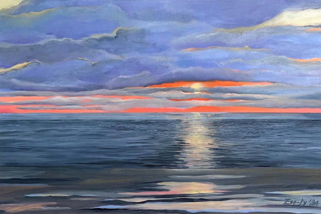 Maalil on kujutatud päikeseloojangut Kakumäe rannas.